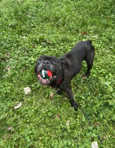 les balades, le ballon, les caresses, marcher sur de l’herbe, un dodo moelleux, des bonnes croquettes, de la mastication, de l’eau fraîche, de l’attention …