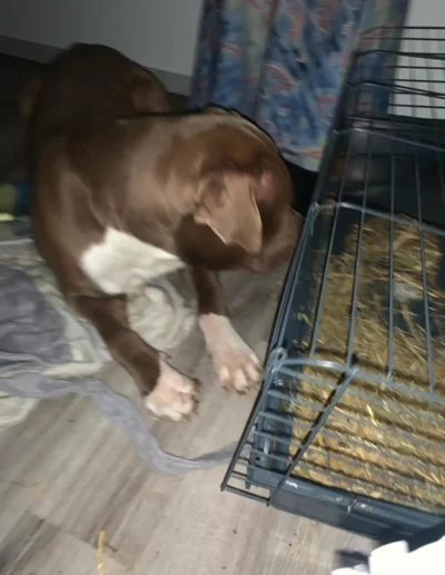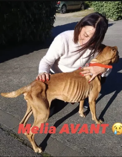 Melia a été victime d’un cauchemar comme en témoigne sa photo, c’est une ADORABLE louloute, câline et joueuse, qui adore les grandes balades et les jeux 🥎